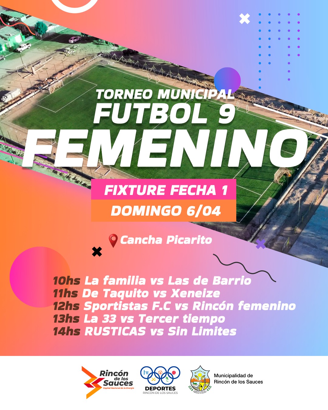 ⚽Invitamos a la comunidad a acompañar la primera fecha del Torneo Municipal de Fútbol Femenino 9, este domingo 6 de abril.